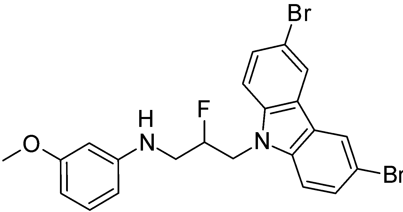 Şekil 1. P7C3-A20 molekülünün kimyasal yapısı: N-[3-(3,6-dibromo-9H-karbazol-9-il)-2-fluoropropil]-3-metoksianilin.
